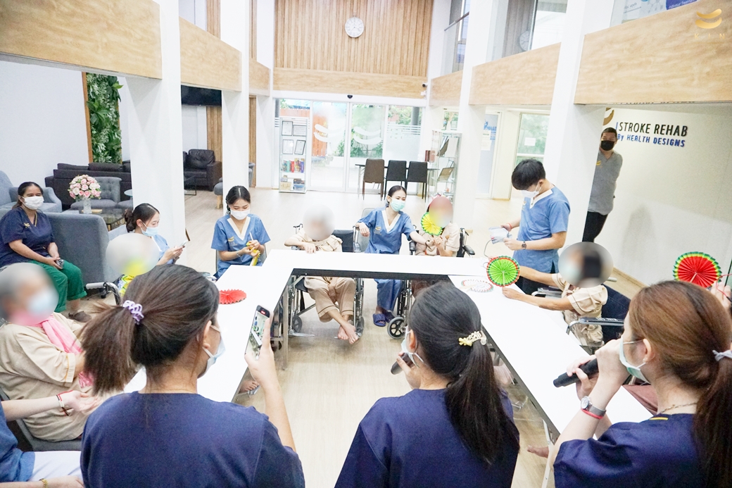 ภาพกิจกรรมบำบัดกลุ่ม ทำใบพัดรูปแตงโม ณ ศูนย์ KIN - Rehabilitation & Homecare